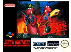 Once I had finished the Megadrive version I was moved across to the SNES version which again only had a basic graphics engine in place, but no code for deformable landscapes. I chose to convert from the Megadrive code, as I knew that inside out, obviously. Apparently this was Team 17/Ocean’s first published Nintendo game.